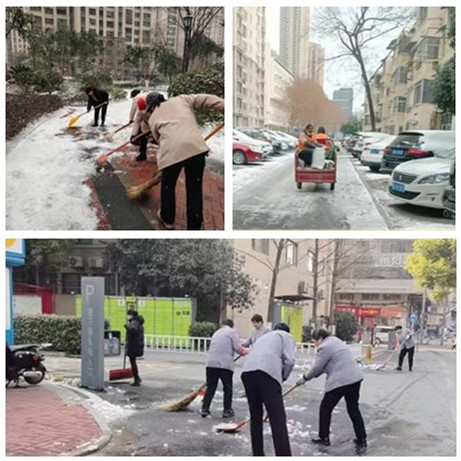 武汉江城清洗服务有限公司各项目作业现场秩序井然、分工明确、协作高效。在出入口、主干道、公共活动区域等人员流动密集的关键点位,保洁员们的身影穿梭在皑皑白雪间,以“快、准、净”为标准,全力推进清雪除冰工作。作业中,他们顶风冒雪、坚守岗位,弯腰挥帚扫雪、躬身铲冰除障,每一个动作都坚定有力。针对业主出行的必经区域,开展逐区清理、逐点排查工作,全方位消除积雪隐患,做到不留任何死角。以坚守岗位的担当筑牢冬季安全防线,全力保障业主安全出行以及正常的生产生活秩序。