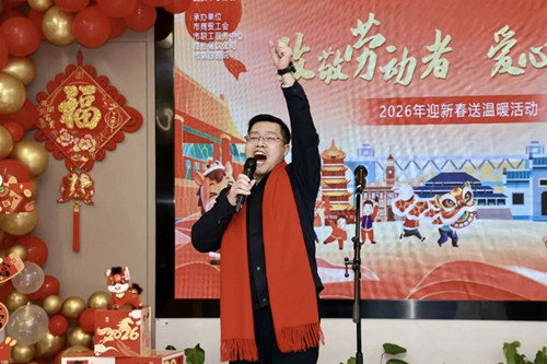 2 月 10 日上午,武汉市职工服务中心一楼大厅暖意融融、年味浓浓,武汉市总工会 2026 年迎新春 “致敬劳动者 爱心送年饭” 活动温情启幕。活动以送年饭、送健康、送文化的暖心形式,向春节期间坚守岗位的一线职工致以新春的美好祝福。我司党支部书记方园、全国优秀农民工肖足荣师傅受邀参加,作为一线劳动者代表参与这场温暖的新春相聚。