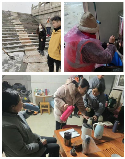 在一线保洁员冒雪奋战的同时,江城清洗各项目管理团队同步启动后方保障工作,提前熬制好红糖姜茶、准备好温热的饮用水,送到各作业区域人员手中,为寒风中的保洁员驱散严寒,让他们在坚守岗位的同时,感受到坚实的后盾与温暖。