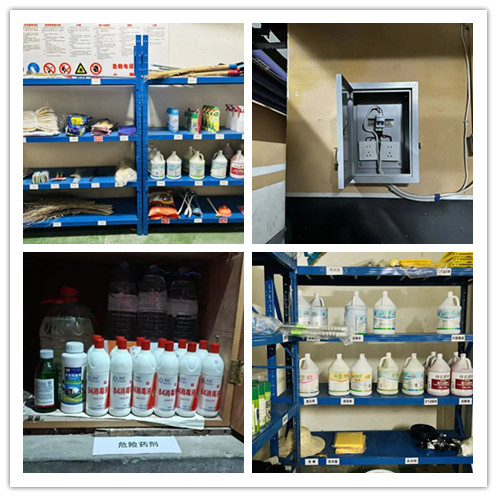检查组严格秉持全覆盖、零容忍原则,深入各项目仓库及配套区域开展拉网式、无死角an全排查。本次检查聚焦药剂an全管理、用电an全两大重点,严格核查药剂规范存放、上锁管控与专人管理落实情况;同时对库房、休息室等关键区域细致巡查,全面检查电路运行及线路铺设合规情况。