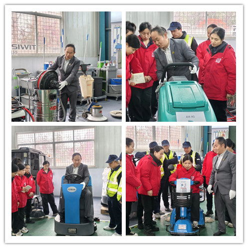 祝明志老师围绕驾驶式 / 手推式洗地机、吸水吸尘机、单擦机、高压水枪、电动扫地机等传统设备,全面讲解设备结构、规范操作、日常保养及安全注意事项,并组织实操考核,确保参训人员懂原理、熟操作、会维护、守安全。